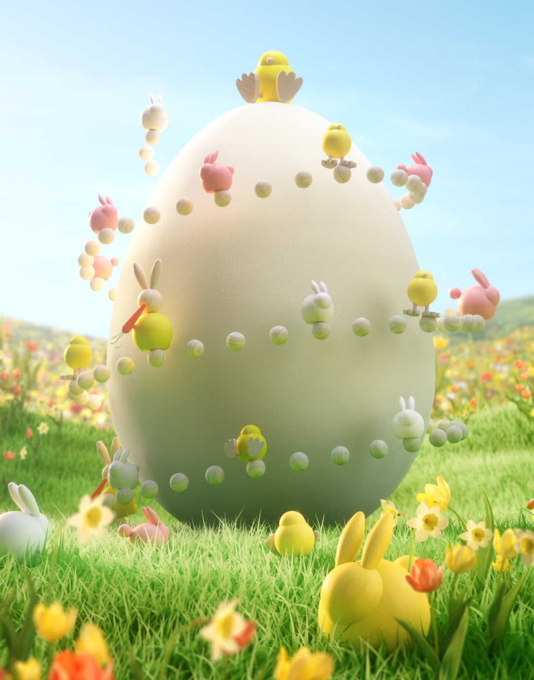 Pupujussi Pääsiäismuna -puufiguuri, 16 cm, valkoinen ja keltainen