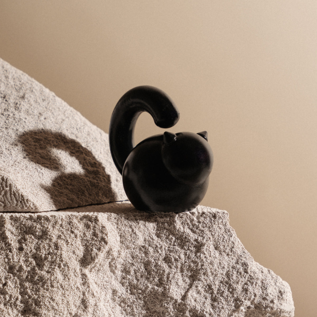 Puu on taipunut pieneksi Kissaksi. Se sopii pääsiäisenä noidan vierelle tai ilahduttamaan sisustusta ympäri vuoden. Tämä sielukas, Kaijan kynästä 1980-luvulla syntynyt puuveistos on myös viehättävä lahja kaikille kissojen ja laadukkaan, käsityönä valmistuvan designin ystäville.