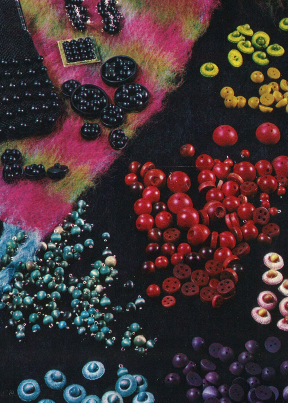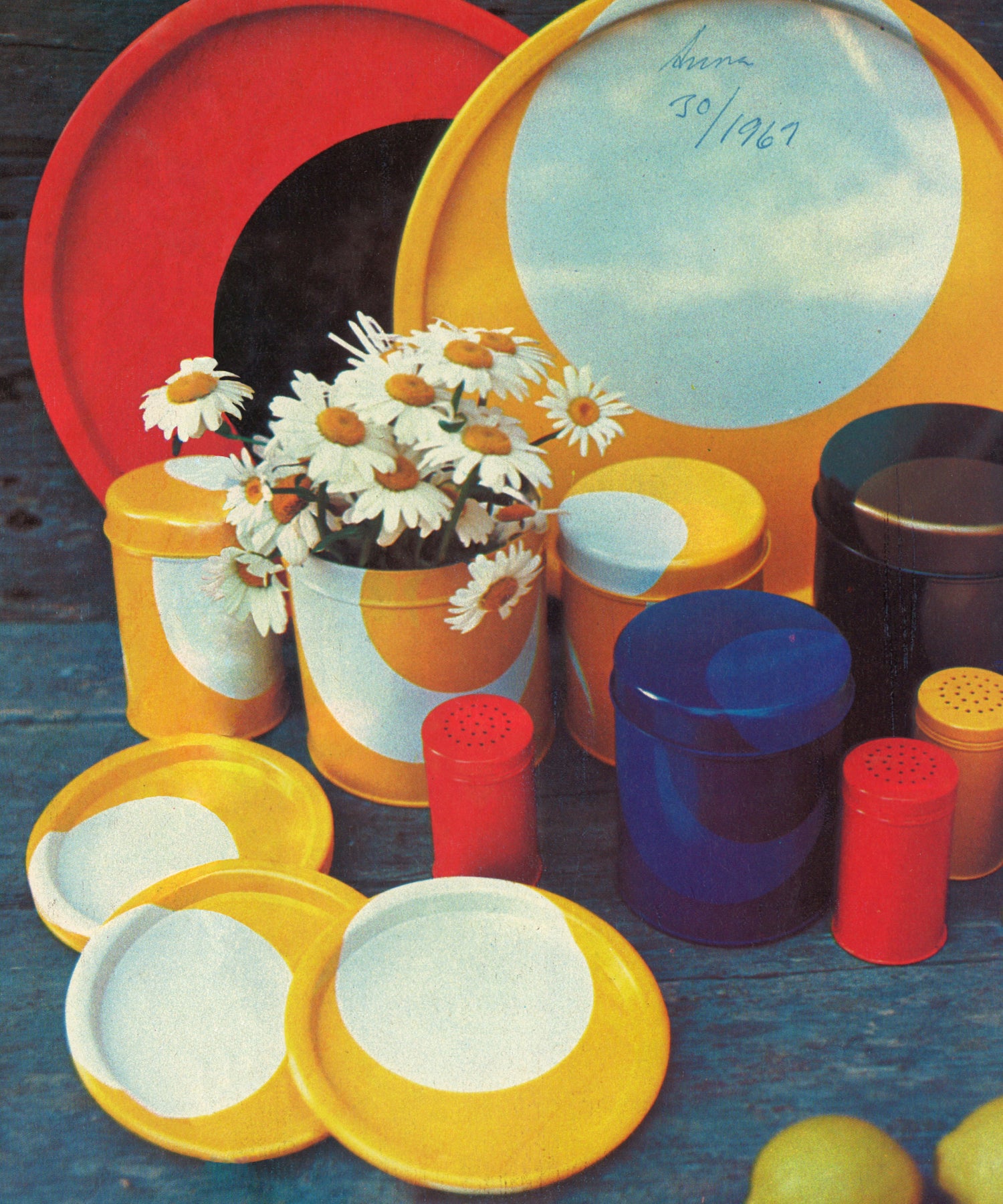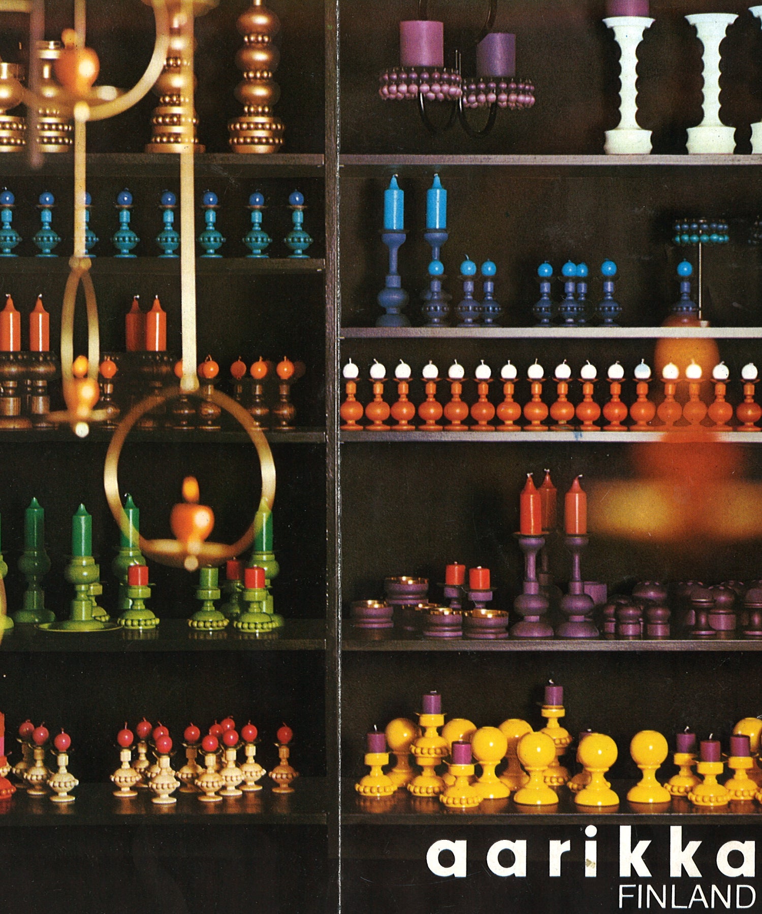 Voimakkaat värit kuuluvat 1960-luvun henkeen niin vaatteissa kuin sisustuksissakin. Kuin tätä aavistellen Kaija ja Erkki ovat kehitelleet jo 1950-luvulla oman puun värjäysmenetelmän, joten ajan vaatimuksiin on helppo vastata. Aarikan puiset korut, kynttiläjalat ja huovat ovat tarpeeksi intensiivisen värisiä valloittaakseen sydämiä värikkäiden synteettisten materiaalien luvatulla vuosikymmenellä.