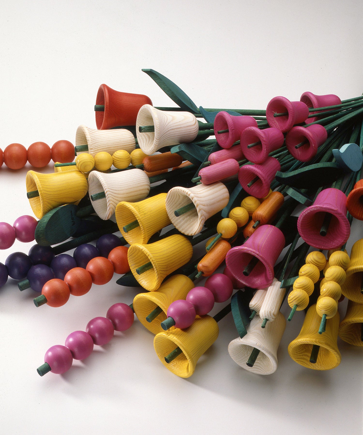 1990-luvulla käyttöesineisiinkin halutaan värejä, hassuttelua ja huumoria. Aika vaatii nyt myös pienemmälle kukkarolle sopivia tuotteita. Kaijan puusta suunnittelemat pitkävartiset kaislat ja kukat sopivat ajanhenkeen. Pikkuruisesta Tikkutiaisestakin tulee hitti.