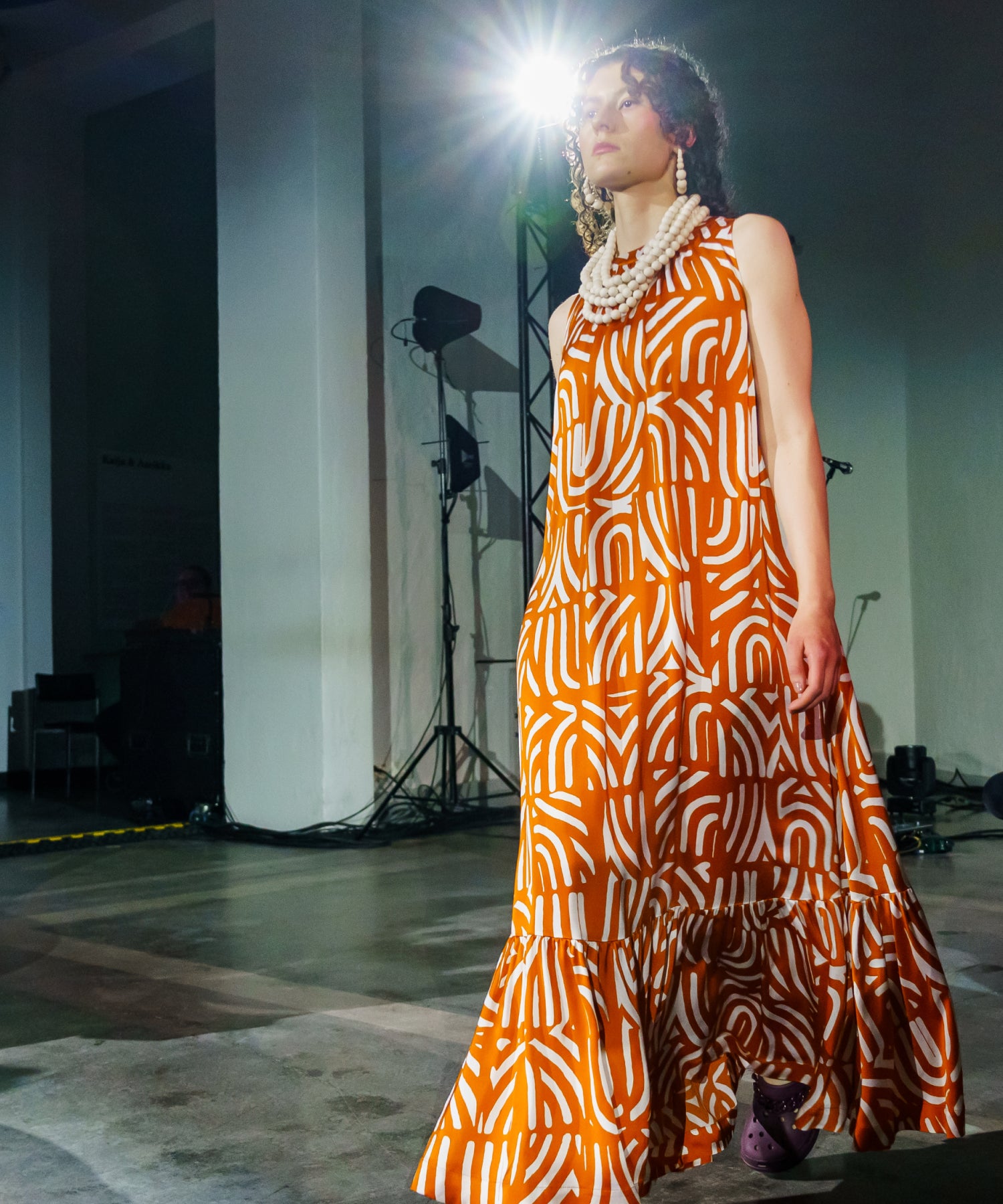 Esittelimme muotinäytöksessä myös yhteistyössä stylisti Meri Milashin kanssa suunnitellun Kunnianosoitus puuhelmelle -malliston ainutlaatuiset puuhelmiasut Aarikan 70-vuotisjuhlavuoden kunniaksi. Henkeäsalpaavan upea ja uniikki mallisto on nimensä mukaisesti kunnianosoitus puuhelmelle, kuin ylistys käsityölle ja Aarikan ikoniselle muotokielelle. Ja puulle. Metsän helmelle.